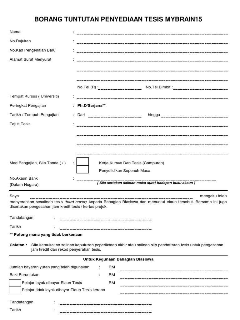 A copy of your bank account. I have sent the hard-bound copy of my thesis to their office with the required documents and forms. Mybrain15 Kpt Photos Facebook Mybrain15 Kpt Photos Facebook Borang Tuntutan Tesis Mybrain15 Pdf.