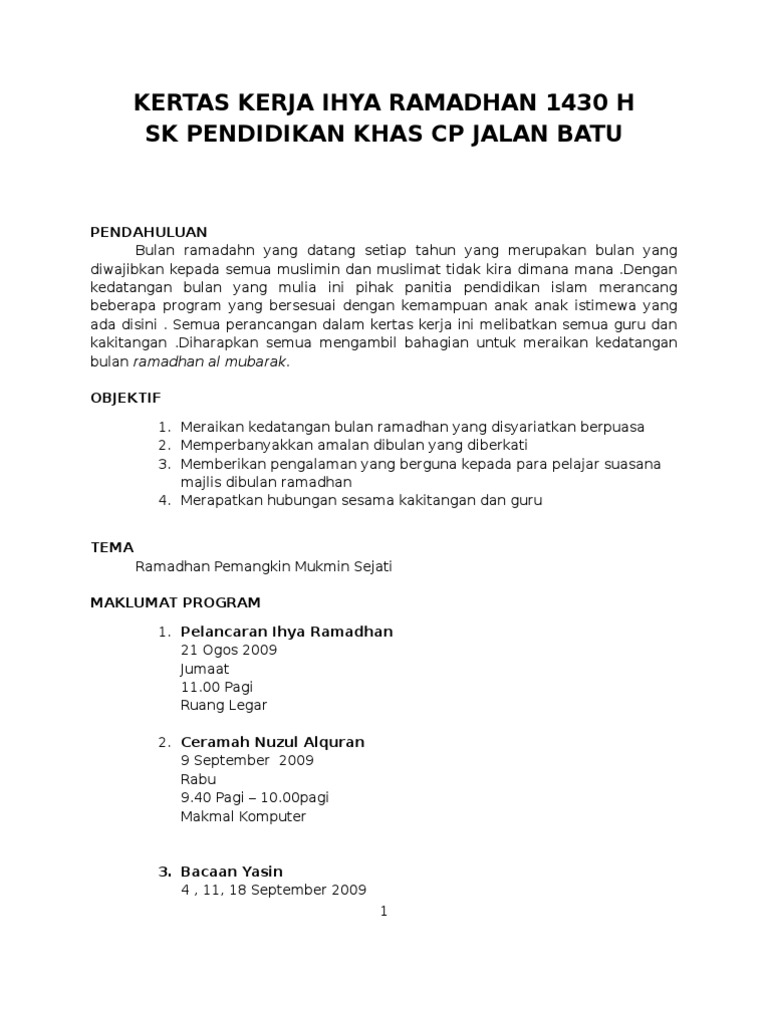 Kertas Kerja Ihya Ramadhan 1430 H Sekolah Pdf
