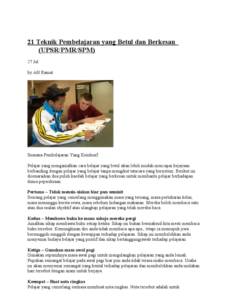 21 Teknik Pembelajaran Yang Betul Dan Berkesan Pdf
